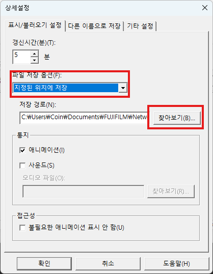 ÆÄÀÏ ÀúÁ¤ ¿É¼ÇÀ» ÁöÁ¤µÈ À§Ä¡¿¡ ÀúÀåÀ¸·Î º¯°æ ÈÄ